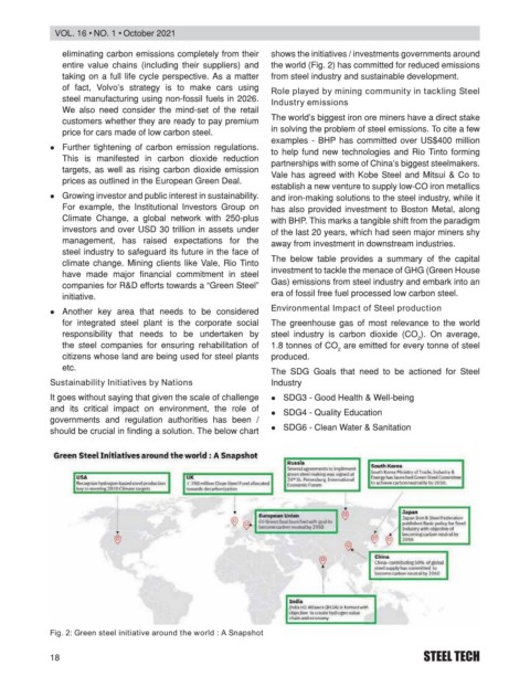 Fig. 2: Green steel initiative around the world : A Snapshot