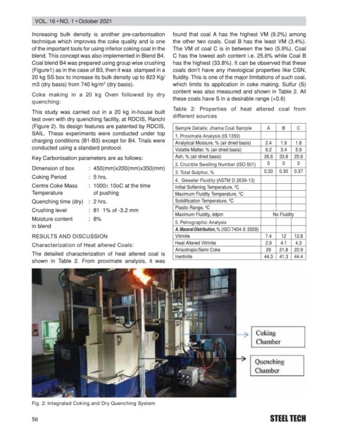 Coke making in a 20 kg Oven followed by dry FRQWHQW ZDV DOVR PHDVXUHG DQG VKRZQ LQ 7DEOH $OO