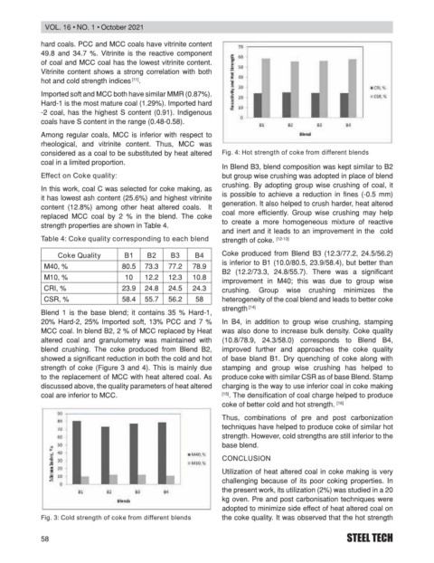 FRQVLGHUHG DV D FRDO WR EH VXEVWLWXWHG E\ KHDW DOWHUHG Fig. 4: Hot strength of coke from different blends
