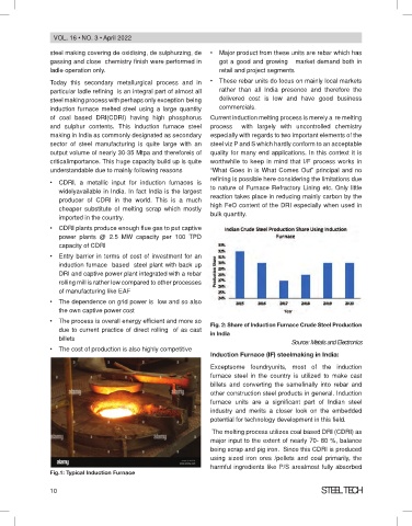 • The process is overall energy efficient and more so Fig. 2: Share of Induction Furnace Crude Steel Production