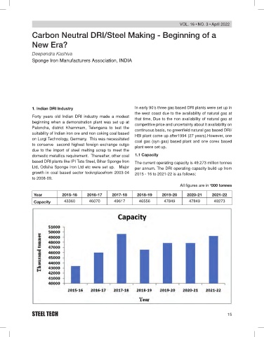 ltd, Odisha Sponge iron ltd etc were set up. Major per annum. the DRI operating capacity build up from