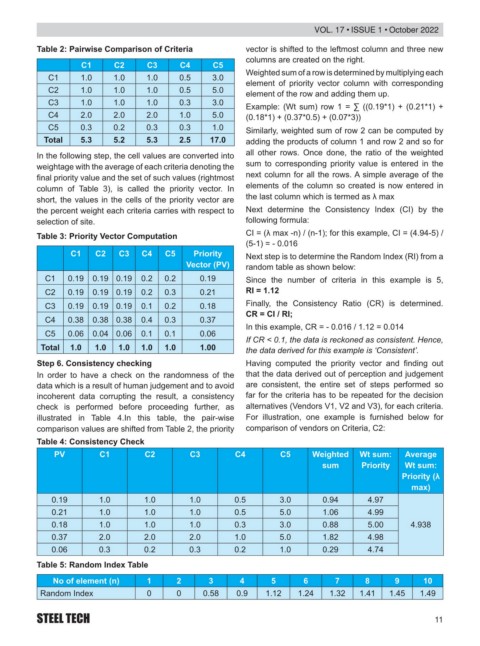 Table 2: Pairwise Comparison of Criteria vector is shifted to the leftmost column and three new