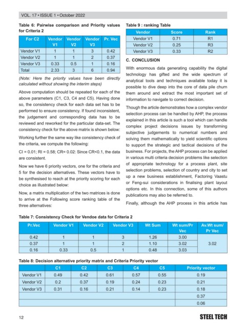 Table 6: Pairwise comparison and Priority values Table 9 : ranking Table