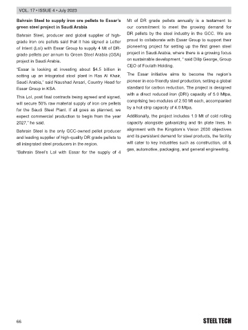 %DKUDLQ 6WHHO SURGXFHU DQG JOREDO VXSSOLHU RI KLJK DR pellets by the steel industry in the GCC. We are