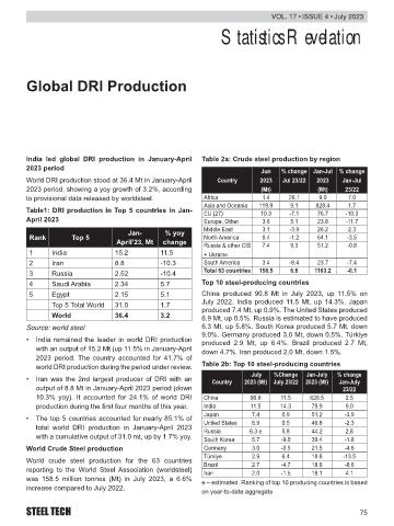 world DRI production during the period under review. 7DEOH E 7RS VWHHO SURGXFLQJ FRXQWULHV
