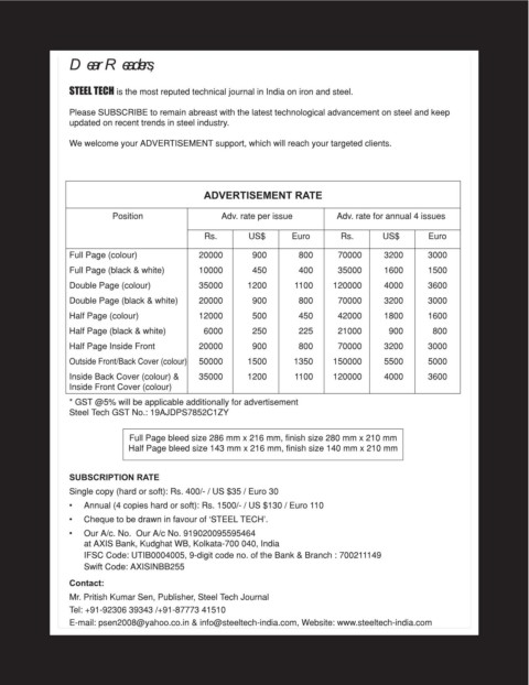 STEEL TECH LV WKH PRVW UHSXWHG WHFKQLFDO MRXUQDO LQ ,QGLD RQ LURQ DQG VWHHO