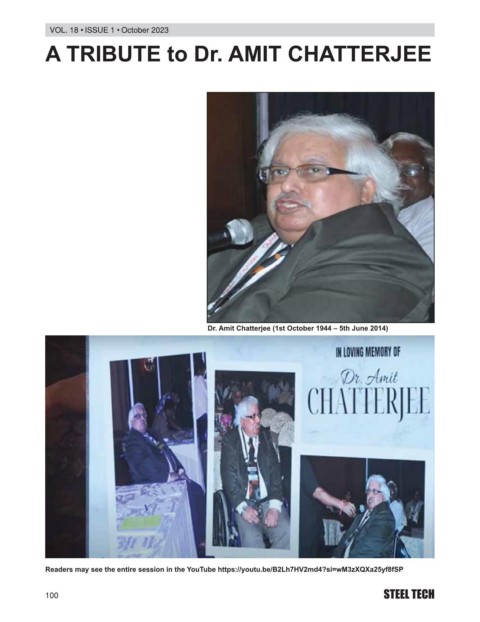 92/ Ć ,668( Ć 2FWREHU $ 75,%87( WR 'U $0,7 &+$77(5-(( 'U $PLW &KDWWHUMHH VW 2FWREHU ± WK -XQH 5HDGHUV PD\ VHH WKH HQWLUH VHVVLRQ LQ WKH <RX7XEH KWWSV \RXWX EH % /K +9 PG "VL Z0 ];4;D \I I63 STEEL TECH