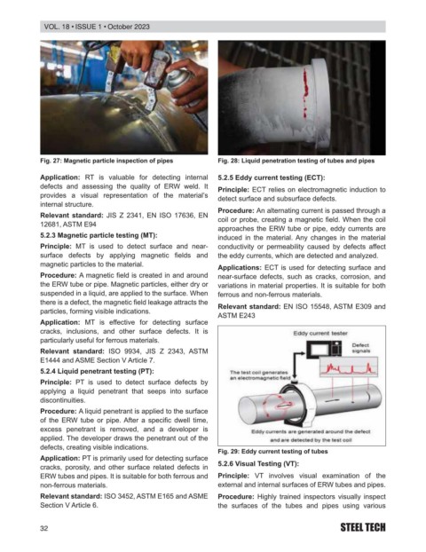 )LJ 0DJQHWLF SDUWLFOH LQVSHFWLRQ RI SLSHV )LJ /LTXLG SHQHWUDWLRQ WHVWLQJ RI WXEHV DQG SLSHV