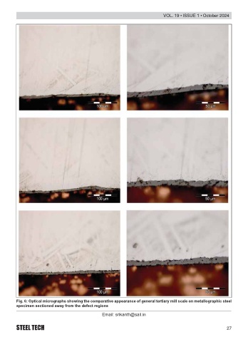 92/ Ć ,668( Ć 2FWREHU )LJ 2SWLFDO PLFURJUDSKV VKRZLQJ WKH FRPSDUDWLYH DSSHDUDQFH RI JHQHUDO WHUWLDU\ PLOO VFDOH RQ PHWDOORJUDSKLF VWHHO VSHFLPHQ VHFWLRQHG DZD\ IURP WKH GHIHFW UHJLRQV (PDLO VULNDQWK#VDLO LQ STEEL TECH